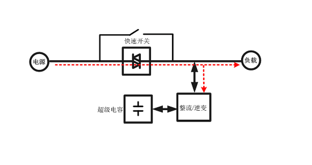 ? 當系統(tǒng)正常運行時,快速開關(guān)處于合閘狀態(tài),負載由電網(wǎng)供電;